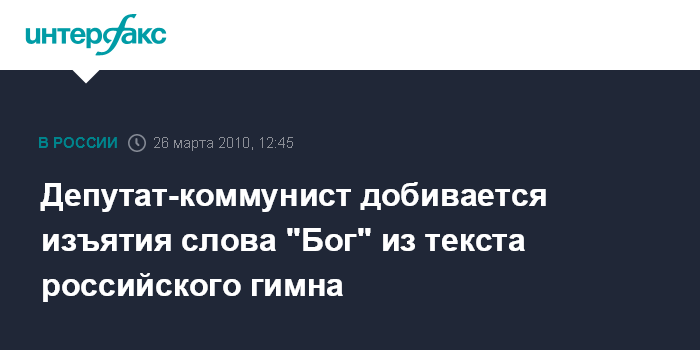 Депутат-коммунист добивается изъятия слова "Бог" из текста российского гимна