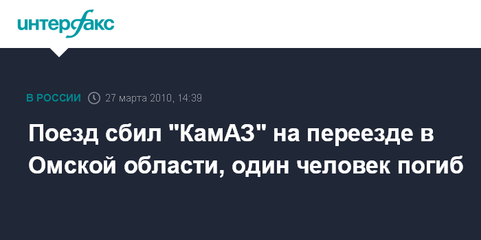 Омск. 27 марта. INTERFAX.RU - Электропоезд и "КамАЗ" столкнулись в субботу на неохраняемом железнодорожном переезде в Омской области. Столкновение произошло в 12:55 по местному времени на перегоне близ райцентра Таврическое, сообщили агентству "Интерфакс-Сибирь" в Главном управлении МЧС РФ по Омской области. "В результате столкновения водитель "КамАЗа" погиб, еще пять человек с травмами госпитализированы", - сказали в управлении МЧС.