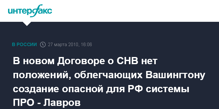 В новом Договоре о СНВ нет положений, облегчающих Вашингтону создание опасной для РФ системы ПРО - Лавров