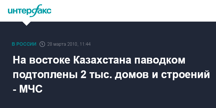 Астана. 28 марта. INTERFAX.RU - В Восточно-Казахстанской области (ВКО) в нынешний паводковый период разрушено уже 428 жилых домов, количество павшего скота превысило 65,7 тыс. голов, сообщило в воскресенье МЧС Казахстана. "Подтоплено 1140 жилых домов, 807 хозяйственных построек, 50 зимовок. Разрушено 428 жилых домов, 479 хозяйственных построек, 24 зимовки. По предварительным данным, в результате паводковой ситуации в области пало свыше 8,8 тыс. голов крупного рогатого скота, 54 тыс. мелкого, почти 3 тыс. лошадей, несколько верблюдов.