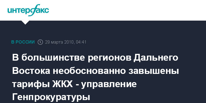 В большинстве регионов Дальнего Востока необоснованно завышены тарифы ЖКХ - управление Генпрокуратуры