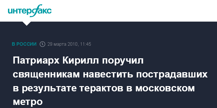 Патриарх Кирилл поручил священникам навестить пострадавших в результате терактов в московском метро