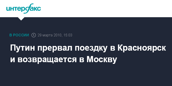 Красноярск. 29 марта. INTERFAX.RU - Премьер-министр России Владимир Путин в связи с терактами в Москве решил изменить рабочий график и вернуться в столицу, сообщил журналистам в понедельник пресс-секретарь главы правительства Дмитрий Песков.