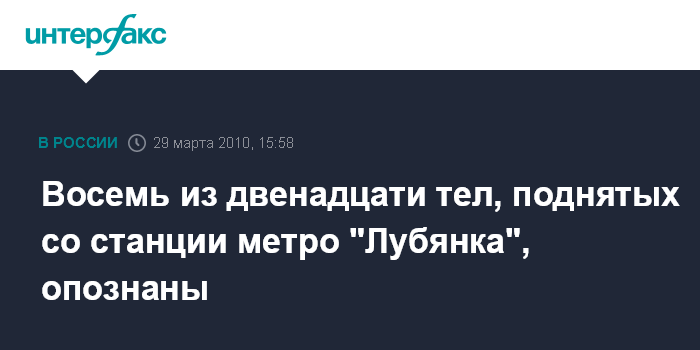 Восемь из двенадцати тел, поднятых со станции метро "Лубянка", опознаны