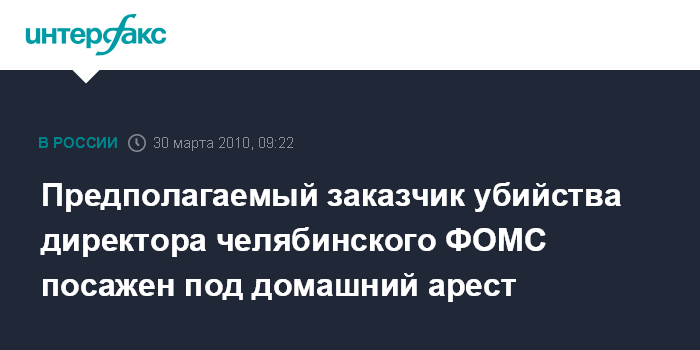 Предполагаемый заказчик убийства директора челябинского ФОМС посажен под домашний арест