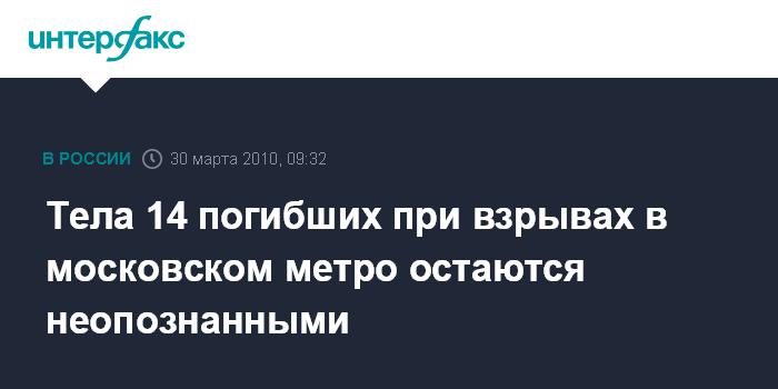 Тела 14 погибших при взрывах в московском метро остаются неопознанными
