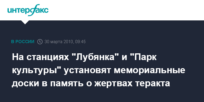 На станциях "Лубянка" и "Парк культуры" установят мемориальные доски в память о жертвах теракта