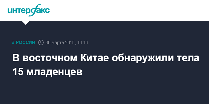 Москва. 30 марта. INTERFAX.RU - Страшную находку сделали в минувшее воскресенье вечером жители города Цзинань китайской восточной провинции Шаньдун: в реке под одним из городских мостов они обнаружили тела 15 новорожденных, сообщили во вторник китайские СМИ.