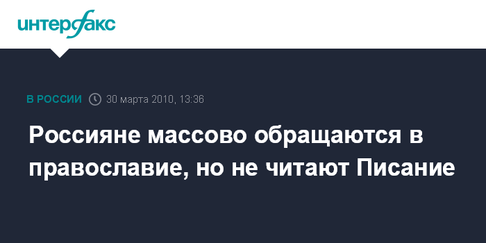 Москва. 30 марта. INTERFAX.RU - Доля последователей православия (как мировоззрения или религии) за прошедший год в Российской Федерации увеличилась с 70% до 75%, достигнув, таким образом, максимального значения за все время измерения, сообщили "Интерфаксу" во вторник социологи ВЦИОМ.