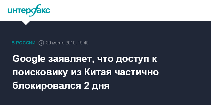 Google заявляет, что доступ к поисковику из Китая частично блокировался 2 дня