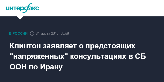 Клинтон заявляет о предстоящих "напряженных" консультациях в СБ ООН по Ирану
