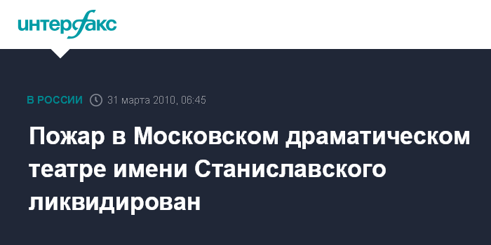 Москва. 31 марта. ИНТЕРФАКС - Пожарные справились с огнем в здании Драматического театра имени Станиславского, расположенного в центре Москвы по адресу: улица Тверская, дом 23.