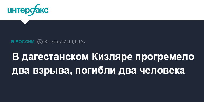 Москва. 31 марта. INTERFAX.RU – В дагестанском городе Кизляр утром в среду произошли два взрыва, сообщил агентству "Интерфакс" источник в правоохранительных органах республики.