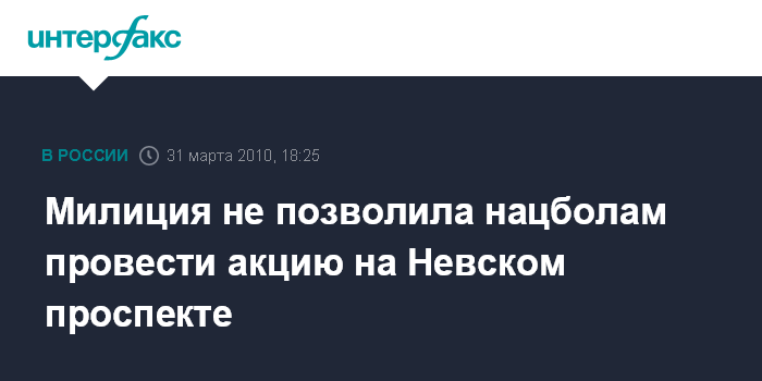 Санкт-Петербург. 31 марта. ИНТЕРФАКС СЕВЕРО-ЗАПАД - Петербургские нацболы и представители ряда других оппозиционных движений не смогли провести на Невском проспекте Петербурга в среду вечером акцию в защиту 31-й статьи Конституции РФ.