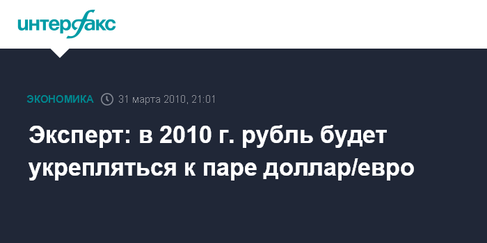 Эксперт: в 2010 г. рубль будет укрепляться к паре доллар/евро
