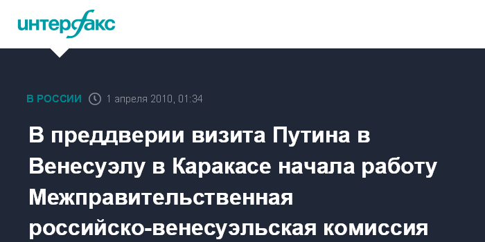 В преддверии визита Путина в Венесуэлу в Каракасе начала работу Межправительственная российско-венесуэльская комиссия высокого уровня