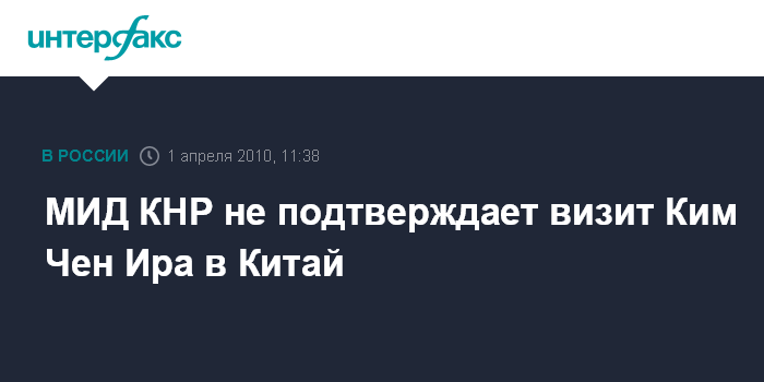 Москва. 1 апреля. INTERFAX.RU – МИД КНР не располагает информацией о визите в Китай северокорейского лидера Ким Чен Ира, заявил в четверг на брифинге официальный представитель МИД КНР Цинь Ган.