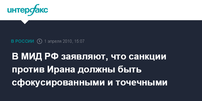 В МИД РФ заявляют, что санкции против Ирана должны быть сфокусированными и точечными