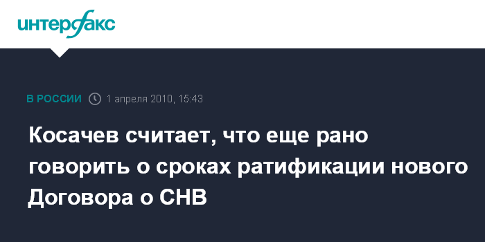Косачев считает, что еще рано говорить о сроках ратификации нового Договора о СНВ