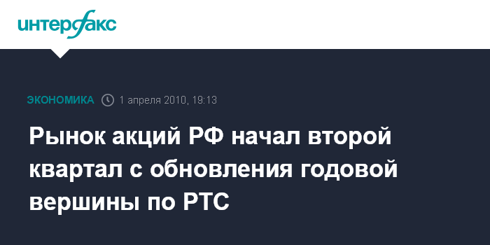 Москва. 1 апреля. INTERFAX.RU - Рынок акций РФ начал второй квартал с обновления годовой вершины по индексу РТС, который превысил 1600 пунктов на фоне позитивной динамики мировых фондовых площадок и нефти.