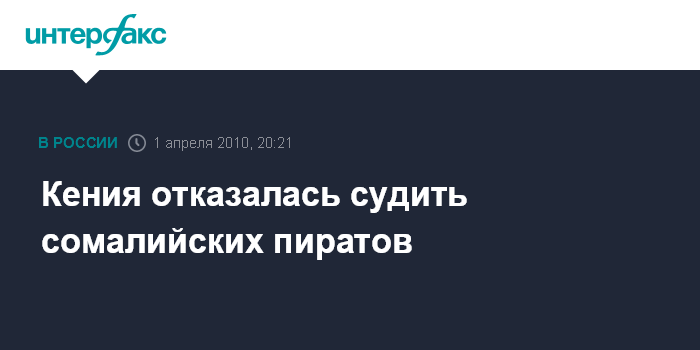 Лондон. 1 апреля. INTERFAX.RU - МИД Кении заявил в четверг об отказе правительства страны в дальнейшем приеме пойманных сомалийских пиратов с тем, чтобы кенийский суд принимал решение об их виновности, сообщает в четверг британская BBC.