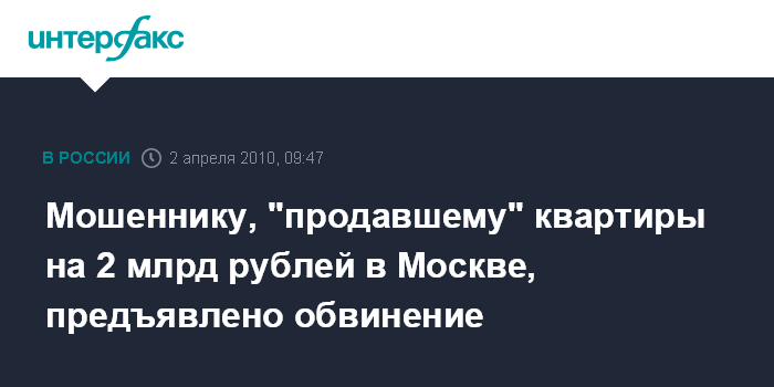 Мошеннику, "продавшему" квартиры на 2 млрд рублей в Москве, предъявлено обвинение