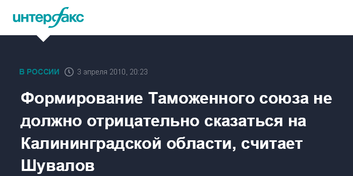 Формирование Таможенного союза не должно отрицательно сказаться на Калининградской области, считает Шувалов