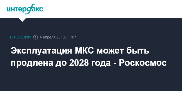 Королев (Московская область). 4 апреля. INTERFAX.RU - Россия приступила к оценке технического состояния Международной космической станции (МКС) для продления ее эксплуатации. "На техническом уровне поставлена задача - рассмотреть возможность продления эксплуатации МКС за пределами 2020 года, имея теоретической целью 2028 год, то есть потенциально оценить возможность станции на орбите в течение 30 лет с начала строительства", - сказал в воскресенье на пресс-конференции в Центре управления полетами начальник управления пилотируемых программ Роскосмоса Алексей Краснов.
