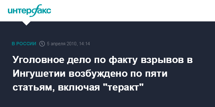 Уголовное дело по факту взрывов в Ингушетии возбуждено по пяти статьям, включая "теракт"
