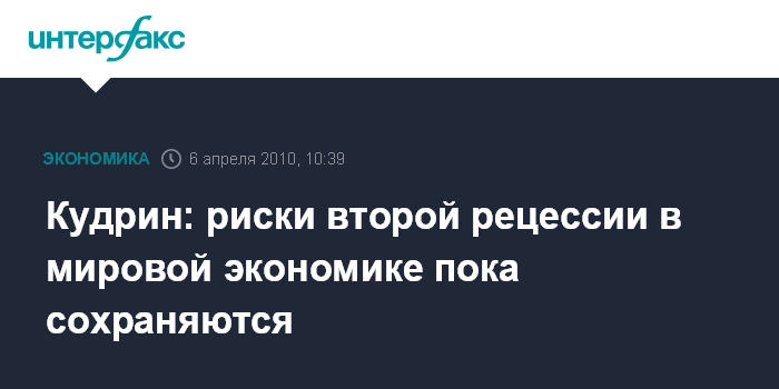 Москва. 6 апреля. INTERFAX.RU - Риски второй рецессии в мировой экономике пока сохраняются, считает вице-премьер, министр финансов РФ Алексей Кудрин, выступая в Высшей школе экономики.