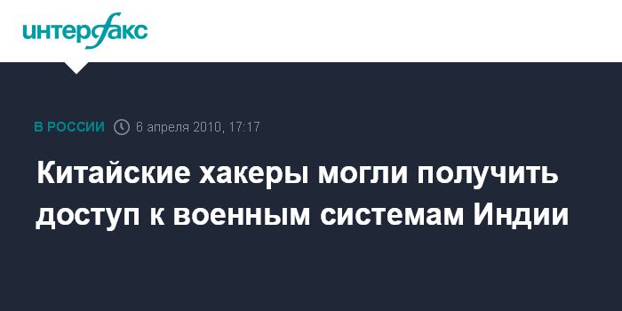 Дели. 6 апреля. INTERFAX.RU - Системы основных ракетных сил и других вооружений Индии могли быть взломаны после того, как китайские хакеры получили доступ к секретным документам в министерстве обороны Индии и индийских посольствах в различных странах мира, сообщает во вторник индийская газета Times of India со ссылкой на исследование экспертов Университета Торонто (Канада).