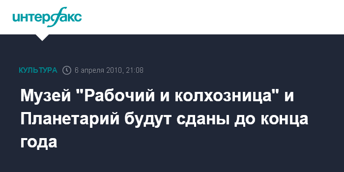 Музей "Рабочий и колхозница" и Планетарий будут сданы до конца года