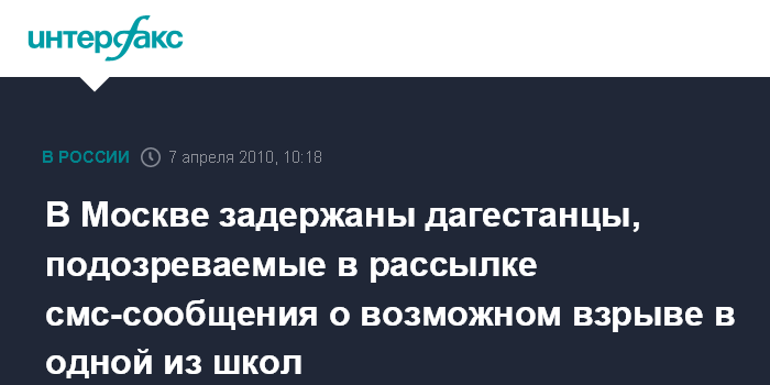 В Москве задержаны дагестанцы, подозреваемые в рассылке смс-сообщения о возможном взрыве в одной из школ