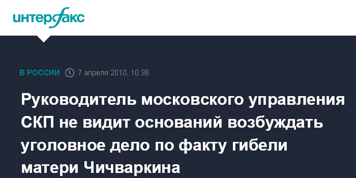 Руководитель московского управления СКП не видит оснований возбуждать уголовное дело по факту гибели матери Чичваркина
