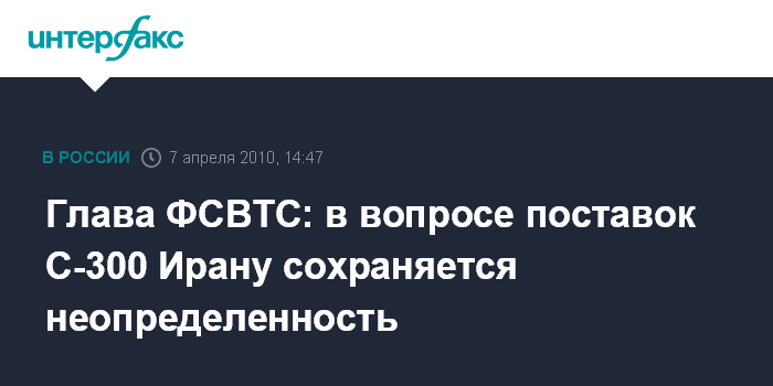 Глава ФСВТС: в вопросе поставок С-300 Ирану сохраняется неопределенность