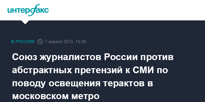 Союз журналистов России против абстрактных претензий к СМИ по поводу освещения терактов в московском метро