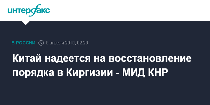 "Мы искренне надеемся на скорейшее восстановление нормального порядка (в Киргизии), а также на то, что все вопросы будут решены на основе законов", - говорится в заявлении. размещенном в ночь на четверг на сайте китайского внешнеполитического ведомства.