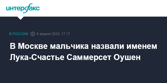 В Москве мальчика назвали именем Лука-Счастье Саммерсет Оушен