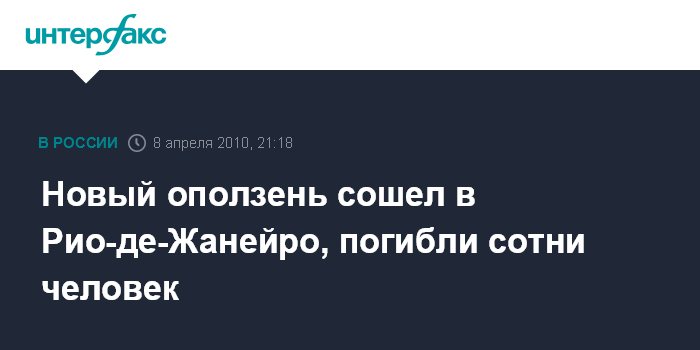 Вашингтон. 8 апреля. INTERFAX.RU - Более 200 человек в четверг были погребены заживо под потоками грязи в ходе схода нового оползня близ бразильского города Рио-де-Жанейро, сообщают американские СМИ со ссылкой на заявление бразильских властей. Оползень произошел в трущобах Нитерои, около Рио-де-Жанейро.