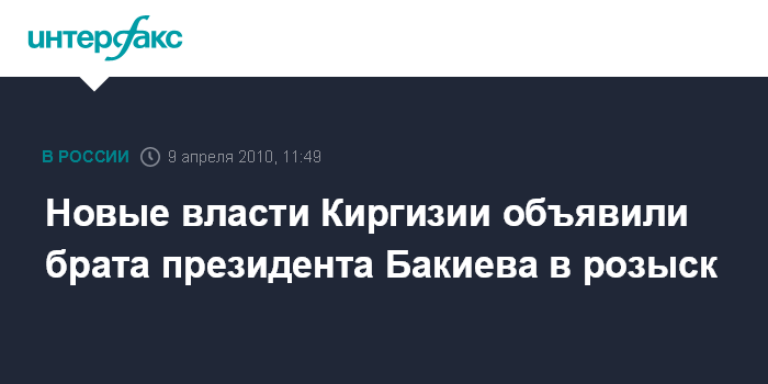 Москва. 9 апреля. INTERFAX.RU – Временное киргизское правительство объявило в розыск главу Службы госохраны президента Курманбека Бакиева и возложило на него ответственность за гибель людей в Бишкеке.