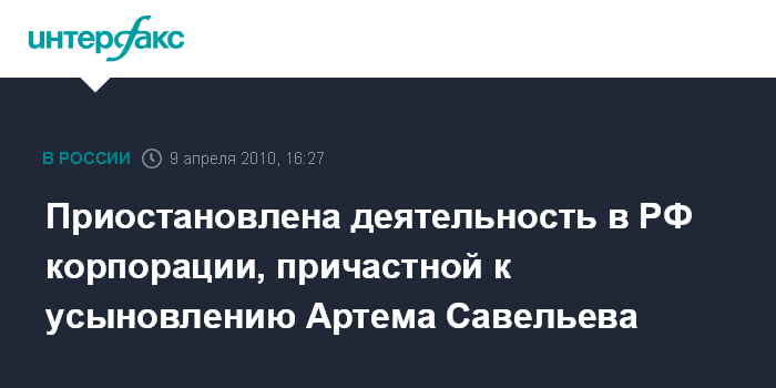 Приостановлена деятельность в РФ корпорации, причастной к усыновлению Артема Савельева