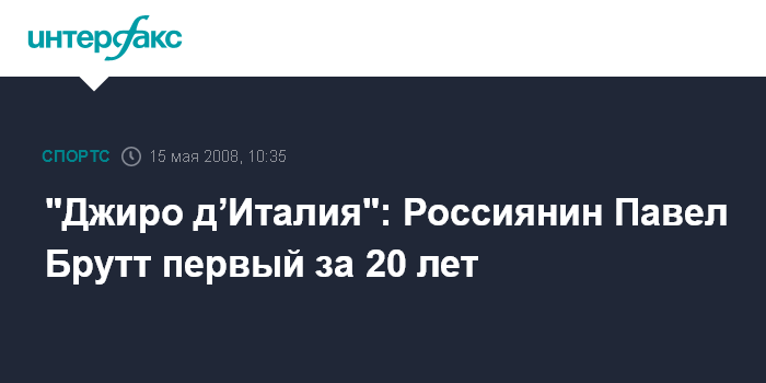 Бельведере Мариттимо/Контурси Терме. 15 мая. INTERFAX.RU – На престижной велогомногодневке "Джиро д’Италия" прошел пятый этап между городами Бельведере Мариттимо и Контурси Терме (203 км). Победителем этапа стал 26-летний российский велогонщик Павел Брутт из команды "Тинькофф". Время Павла 5 часов 4 минуты 23 секунды. На четыре секунды от россиянина остал Йоханнес Фройлингер, на третьем месте Луис Лаверда Хименес.