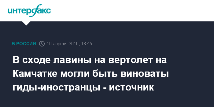 Как стало известно агентству из осведомленных источников, группу немецких любителей хели-ски (разновидность горнолыжного спорта - "ИФ") сопровождали два немецких гида-проводника, работавших по контракту с компанией "Камчатка-Эксплорер", зарегистрированной в США.