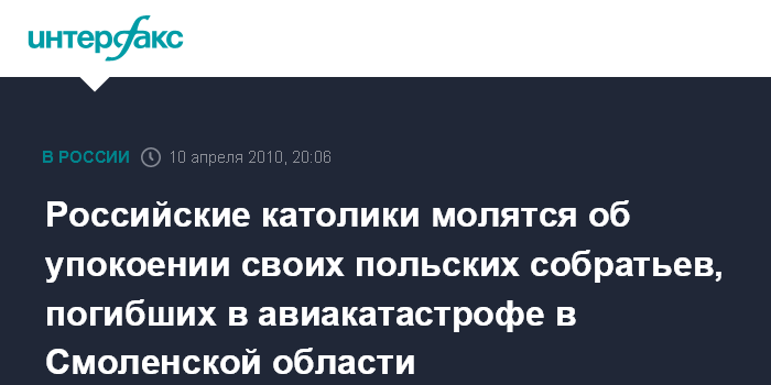 Москва. 10 апреля. ИНТЕРФАКС - В ближайшие дни в католических храмах Центральной России пройдут заупокойные службы по жертвам авиакатастрофы, унесшей жизни президента Польши, его супруги, известных польских политиков и представителей духовенства.