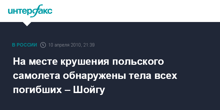 На месте крушения польского самолета обнаружены тела всех погибших – Шойгу