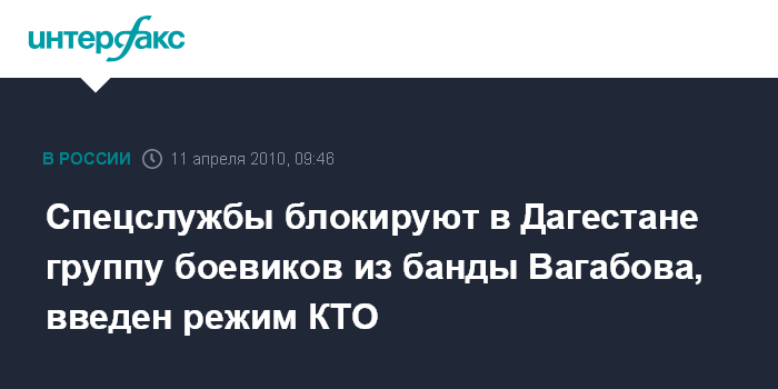 Махачкала. 11 апреля. ИНТЕРФАКС-ЮГ - Режим контртеррористической операции введен в 07:30 в воскресенье на территории лесного массива южнее селения Губден Карабудахкентского района, сообщили "Интерфаксу" в пресс-службе ФСБ России по Дагестану.
