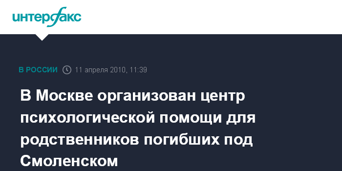 В Москве организован центр психологической помощи для родственников погибших под Смоленском