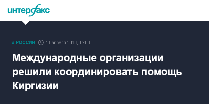 Бишкек. 11 апреля. INTERFAX.RU - Представители международных организаций ООН, ОБСЕ и ОДКБ договорились в воскресенье в Бишкеке о координации действий по оказанию помощи Киргизии, сообщил "Интерфаксу" официальный представитель ОДКБ.