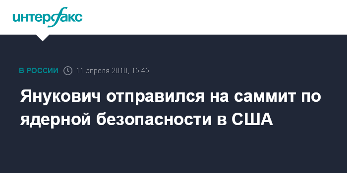 Киев. 11 апреля. INTERFAX.RU - Президент Украины Виктор Янукович в воскресенье отбыл с рабочим визитом в США, где примет участие в саммите по вопросам ядерной безопасности. Президентский самолет приземлится в воскресенье вечером на авиабазе Военно-Воздушных сил США "Эндрюс". Авиабаза расположена в 24 км на юго-восток от центра американской столицы и обеспечивает прием и отправку самолетов высоких иностранных государственных деятелей во время их официальных визитов в США.