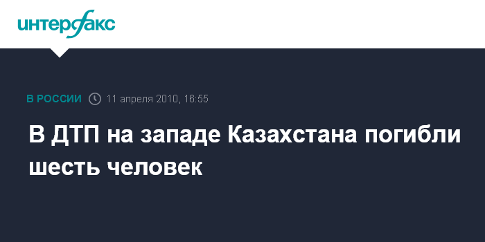Атырау. 11 апреля. INTERFAX.RU - Шесть человек, в том числе 10-летний ребенок, погибли в ДТП в Атырауской области Казахстана. "Мазда" и "ВАЗ-2109" столкнулись в ночь на воскресенье на дороге в районе села Чапаево Исатайского района в 65 км от Атырау. Погибли оба водителя и четыре пассажира первой машины, сообщила агентству "Интерфакс-Казахстан" руководитель пресс-службы областного департамента по ЧС Самал Абирова.